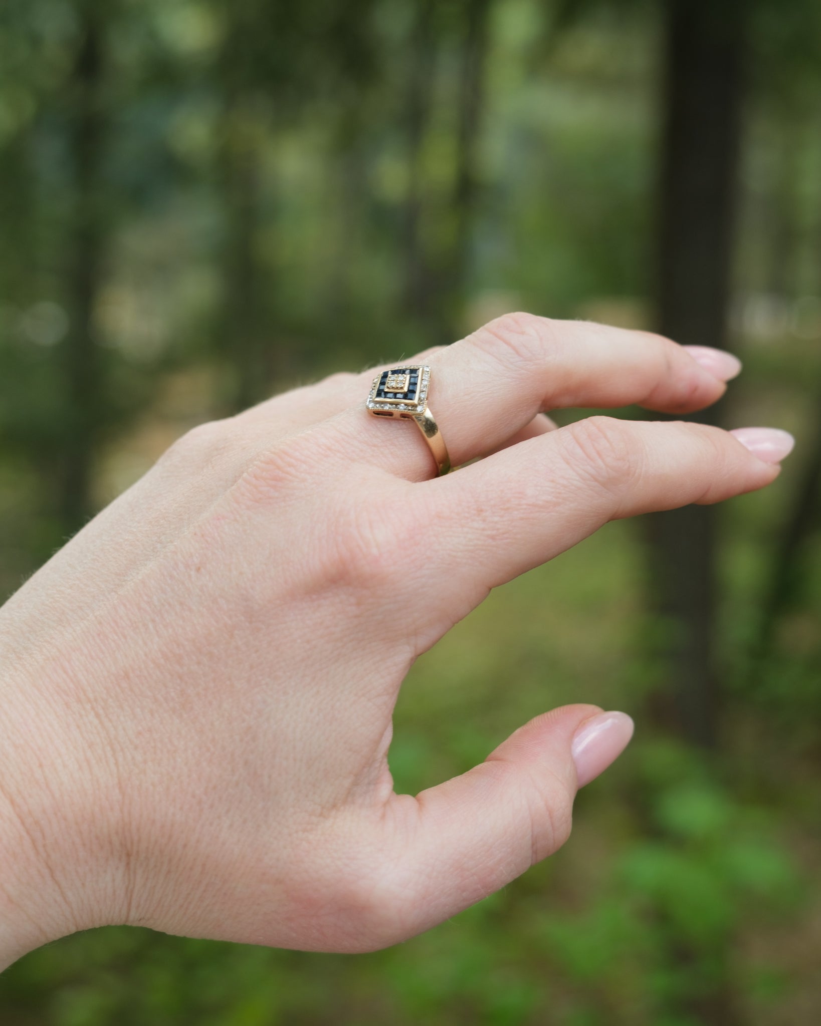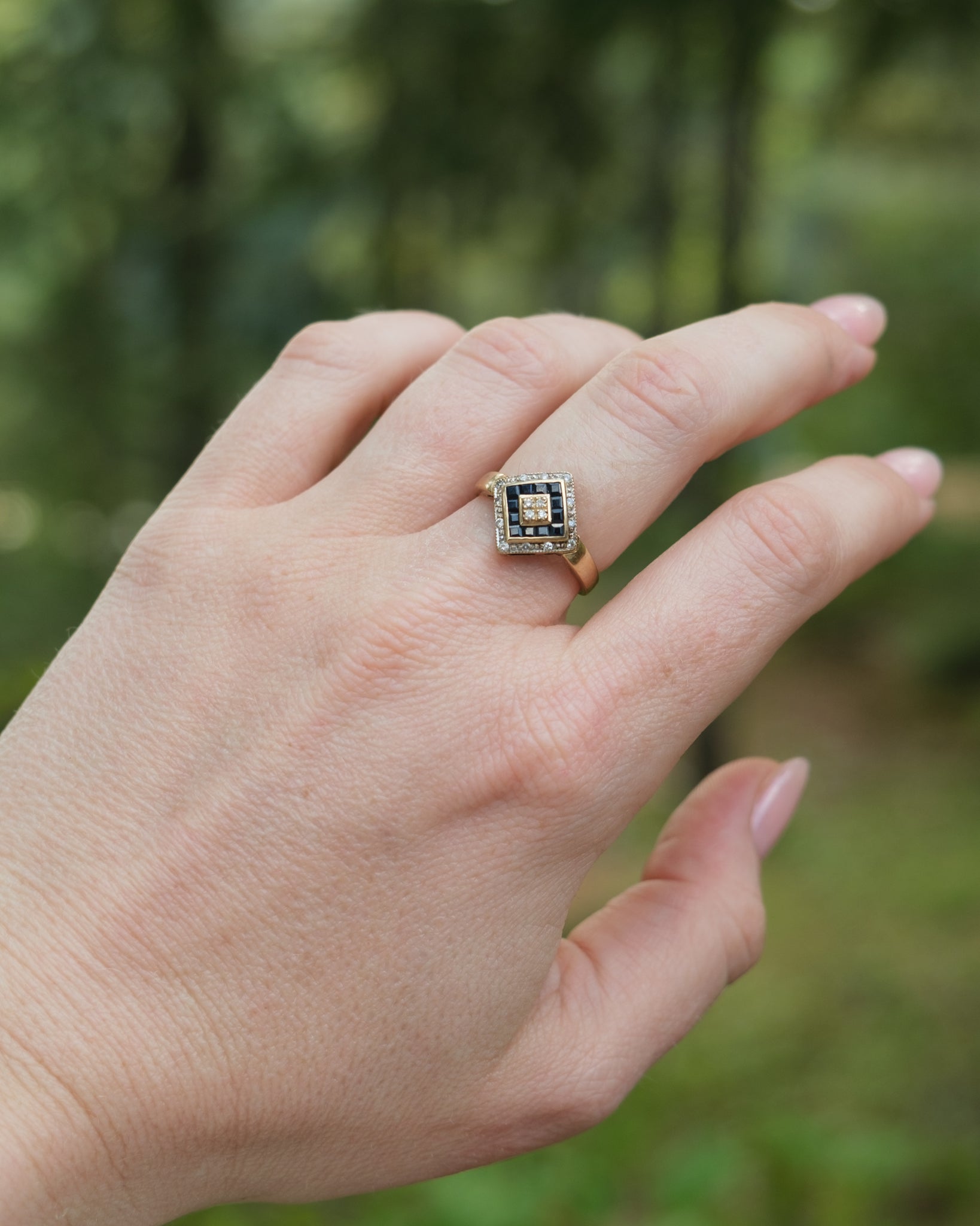 Named for the small tiles that form ancient mosaics, the Tessera Ring speaks to lovers of refined beauty and intricate details. Its balance and symmetry, brought to life through expert craftsmanship, create a sense of perfect harmony. Symbolizing wisdom and protection, the sapphires brings depth and meaning to this one-of-a-kind piece, while the diamonds add a subtle but captivating sparkle.